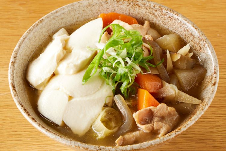 【具材】豚バラ、大根、人参、里芋、ごぼう、こんにゃく、蓮根、生姜、ニンニク、刻みネギ、豆腐