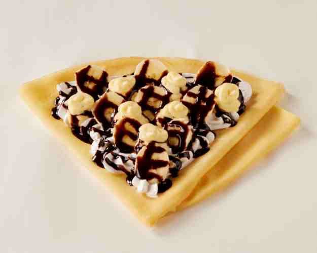 濃厚チョコレートとたっぷりのバナナを使用!カスタードとクリームを両方楽しめるWチョコバナナクリームクレープです! ※クレープのサイズをお選びいただけます。